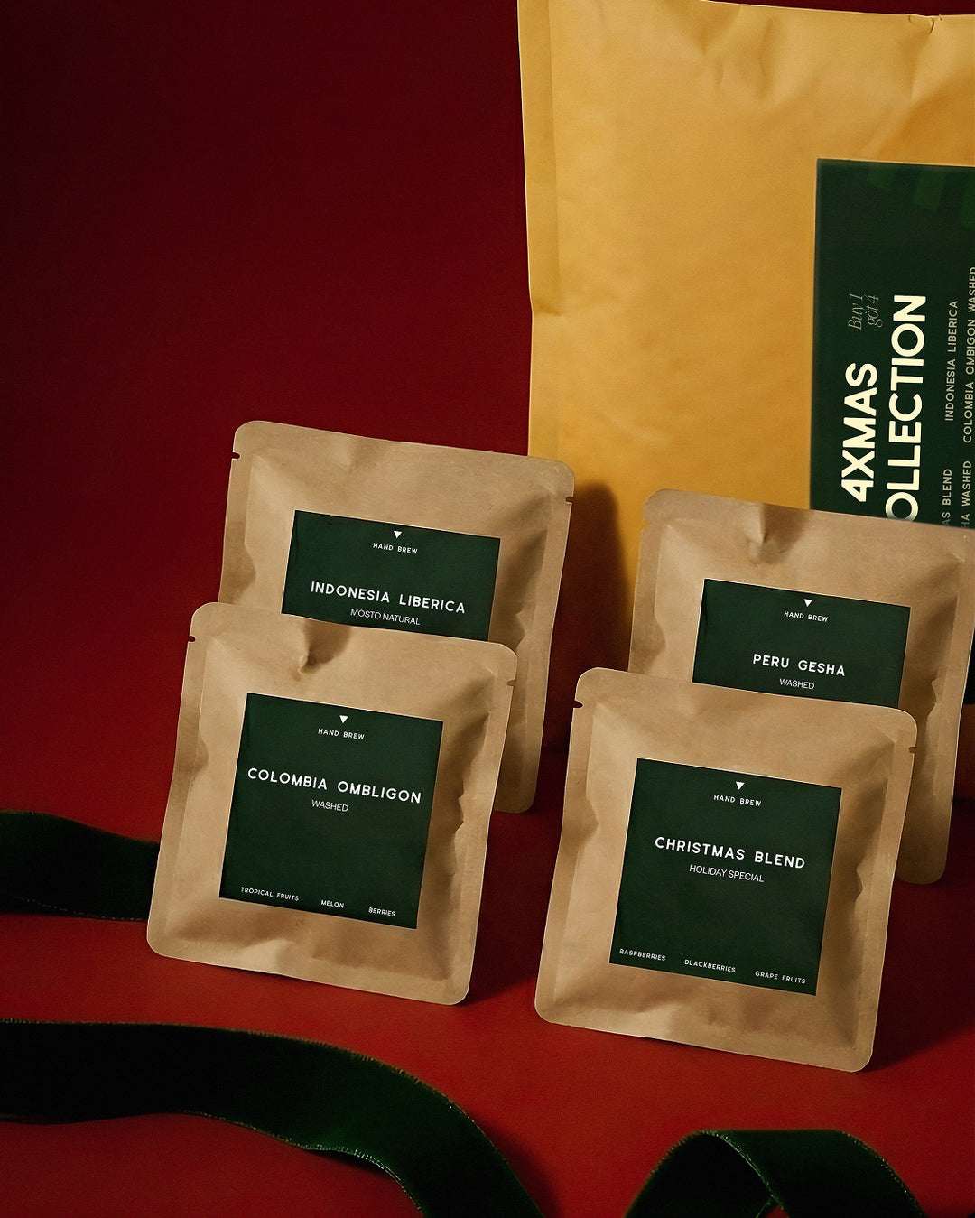 - Christmas Blend (Peru Gesha x Colombia Ombligon): Mảnh ghép độc đáo chỉ có trong 4Xmas Collection. Sự kết hợp giữa nét thanh khiết của Gesha và sự thú vị trong các nốt hương của Ombligon tạo nên những hương vị độc đáo gây ấn tượng của phúc bồn tử, mâm xôi đen và nho chín, mang đến trải nghiệm mới lạ cho mùa Giáng sinh.
